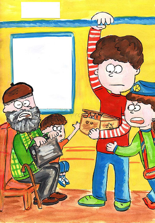 Я в автобусе тихонькоВёз в коробочке котёнка.Вдруг мяукнул громко тот.Удивился весь народ.Мне грозит кондуктор пальцем: – Твой котёнок едет зайцем!