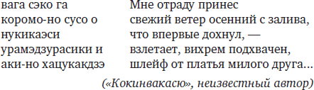 Грандиозной вехой на пути развития японской поэзии стал выход антологии «Собрание старых и новых песен Японии» («Кокинвакасю», или сокращенно «Кокинсю», X век), которая вместе с «Манъёсю» возглавляет список поэтических шедевров классической японской литературы. В 905 году император Дайго повелел четверым знатокам и ценителям японской песни вака – Ки-но Цураюки, Ки-но Томонори, Осикоти-но Мицунэ и Мибу-но Тадаминэ – составить изборник японской лирики, включив в него лучшие произведения поэтов древности и современности. Спустя несколько лет книга была готова. Тем самым было положено начало традиции выпуска императорских антологий, которые призваны были сохранить для потомства творения великих мастеров стиха.