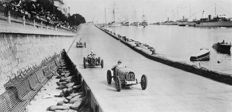 Пьер Вейрон на Bugatti Type 51 опережает графа Карло Феличе Тросси на Alfa Romeo команды «Скудерия Феррари» в Монако в 1934 году.