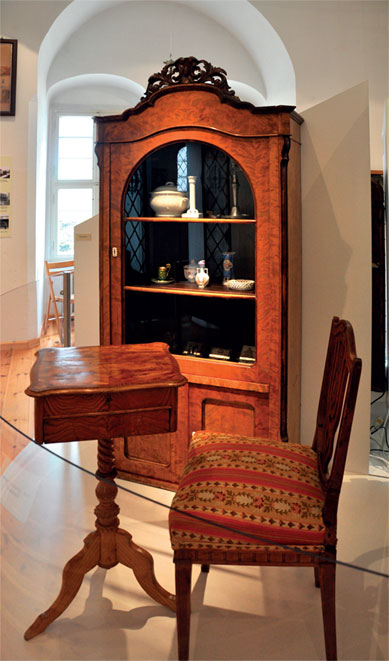 Мягкий изгиб спинок диванов, кресел и стульев. Популярны софы и диваны, функциональная мебель, мебель с механизмами, раздвижные столы, столы с выдвижными или откидными столешницами, стулья, трансформируемые в библиотечную лестницу, секретеры и трельяжи с выдвижными ящиками, витрина, остекленная с одной или трех сторон, бюро.