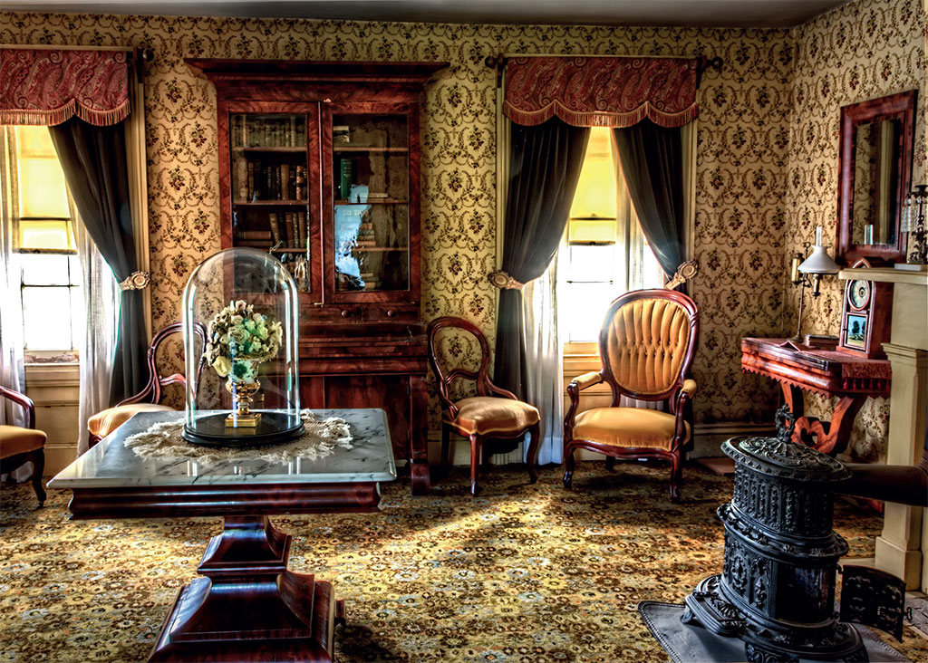 Увлечение восточной обстановкой: курительные и турецкие комнаты, китайские и японские предметы интерьера. В доме появляется «чистая комната» для приема гостей, украшенная декоративными предметами, акварелями, миниатюрами, вышивками и сувенирами, часто выполненными хозяевами дома.