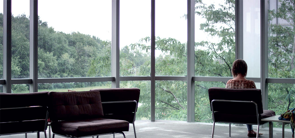 Окнам не уделяется большое внимание, лучше всего декорировать их жалюзи или яркими шторами с простой фактурой.