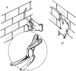 Рис. 31. Техника расшивки швов: а) вертикальных, б) горизонтальных