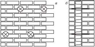 Рис. 34. Установка связей между внутренней и наружной стенками в трехслойной стене: а) вид прямо; б) разрез