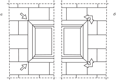 Рис. 41. Оформление проемов теплоизоляционными плитами: а) неправильное; б) правильное