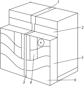 Рис. 44. Устройство деформационных швов: 1 – заполнение полоской минеральной ваты; 2 – клей; 3 – компенсационный шов, в котором размещены профиль и сетка; 4 – армирующая сетка, утопленная в клеевой раствор; 5 – утеплитель; 6 – штукатурка