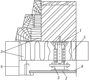 Рис. 47. Узел примыкания навесной фасадной системы к оконному проему: 1 – кронштейн; 2 – направляющая; 3 – кляммер; 4 – плитка облицовочная; 5 – плита теплоизоляционная; 6 – стальной элемент рамы оконного обрамления