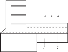 Рис. 54. Утепление пола подвала: 1 – фундаментная плита или грунт с выравнивающим слоем песка; 2 – противокапиллярная изоляция; 3 – теплоизоляция; 4 – гидроизоляция поверх слоя минваты (для пенополистирола такой слой не нужен); 5 – бетонная стяжка