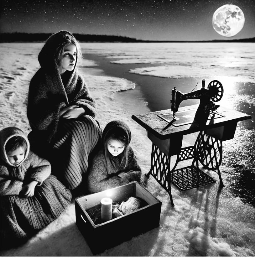 Wieder ohne Dach über dem Kopf, saßen die Reste der einst großen Familie Leis spät abends am Ufer der zugefrorenen Wolga. Der Frost war beißend, aber es gab keinen Rückweg. Maria, Emilia und Martin, bemüht, sich zu wärmen, drängten sich dicht aneinander unter dem Vaters Pelzmantel. Amalia fand darunter keinen Platz. Sie saß etwas abseits, die Hände am Rand der Wiege haltend, die sie aus dem Haus gerettet hatte.