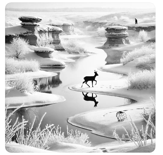 Обегая проталины, где прозрачные родниковые воды подтачивали лед, Баймухамбет осторожно приблизился к павшему животному. Стройный самец косули лежал неподвижно, словно сливаясь с белизной снега, который теперь украшали тонкие бисерные капли крови, раскинувшиеся веером вокруг.