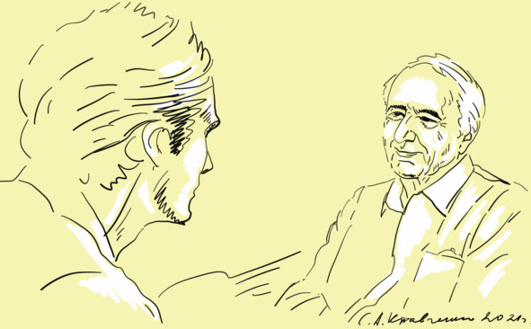 Диалог между повзрослевшим ребенком и престарелым родителем, сыном и отцом.