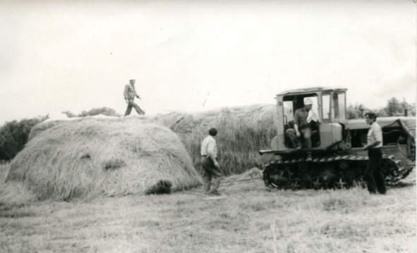 Время поджимало, накатывались дожди, надо было убрать с угодий заготовленное сено. Мобилизовали всех. Я поехал на сенокос на выходные с сыновьями, которые были ещё младшеклассниками. На сенокосе взрослые собирали сено по полям и свозили его в одно место для стогования. Детям было предложено утрамбовывать сено наверху стога. А тому, кто выдержит и не уйдёт со стога до вечера будет специальный приз – 4,5 килограммовая банка сгущёнки. Пацаны мои, Андрей и Антон, и их друг Женя Наконечный, держались стойко. Они не спустились со стога до вечера, несмотря на жару и комаров. Им торжественно вручили приз и похвалили за работу. Радостные, они немедленно наелись сгущёнки до отвала, так насытились, что с тех пор сгущёнку не очень-то жалуют…
