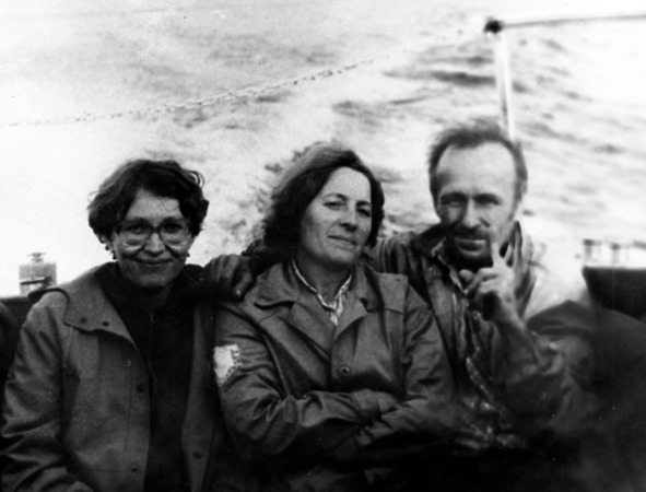 Т. Муратова, М. Стрельцова, В. Поминов с сенокоса по Верхней Ангаре на катере