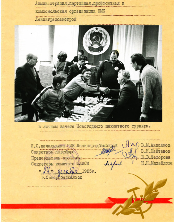 Кто же и как поддерживал спортивный настрой в коллективе? Почему ленбамовцы были так заражены спортом? Ответ прост: была группа энтузиастов-любителей, она завоевала ведущую роль в общественной жизни ПМК, была и поддержка руководства. Можно было не удивляться, посетив вечером спортзал и увидев, как азартно гоняют мяч начальник ПМК В. М. Анисимов, секретарь парторганизации В. И. Шайтанов. Своей неуёмной энергией всех заражала инструктор производственной гимнастики Л. К. Иванова. В соревнованиях не было ни начальников, ни подчинённых, ни молодых, ни старых – всех объединяло стремление к победе. Вот далеко неполный перечень спортсменов ПМК «ЛенинградБАМстрой», с которыми мне пришлось участвовать во многих спортивных мероприятиях: Виктор Дубровский, Василий Мишура, Василий Федин, Виктор Прохоренко, Анатолий Игнатьев, Раиса Сильченко, Валентина Коровина, Александр Воротников, Григорий Раскин, Виктор Зырянов, Николай Гончаров, Владимир Малахов, Павел Цапро, Любовь Иванова, Георгий Белый, Александр Хаптаринов, Николай Сазонов, Виктор Склянов, Геннадий Тен, Михаил Крыжановский, Николай Гарист, Леонид Пискунов, Татьяна Глухова, Нелли Шеин, Василий Воронин, Александр Рассадин, Александр Дельхман, Владимир Осипчук, Валерий Литвин и много-много других…