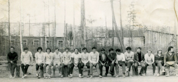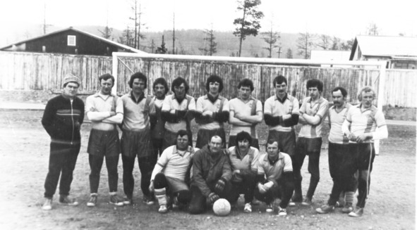 Команда ПМК «ЛБС» по футболу: Ренат Сайфутдинов, Александр Шмакотин, Александр Панченко, Георгий Белый, Виктор Пистюрин, Анатолий Парфенюк, Вячеслав Петров
