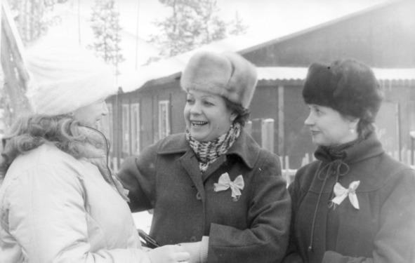 Помощь колхозам оказывали все организации на БАМе, это позволяло снабжать строителей овощами, выращенными в местных колхозах. Справа – Ольга Погодина