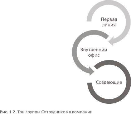 Любую среднестатистическую компанию можно представить в виде пирамиды. Тогда в ее верхней трети будет размещена первая группа, а в нижней – третья. Несмотря на то что обе группы находятся на противоположных полюсах пирамиды и, следовательно, в иерархии компании, у них есть много общего. Руководители и те Сотрудники, которые занимаются продажами и постоянным общением с Клиентами, а также Сотрудники, занятые на производстве, наиболее адекватны в восприятии реальной жизни и ее вызовов.