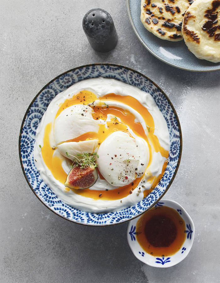 Поверх йогурта положите яйца пашот, полейте их ароматным маслом и наслаждайтесь!
