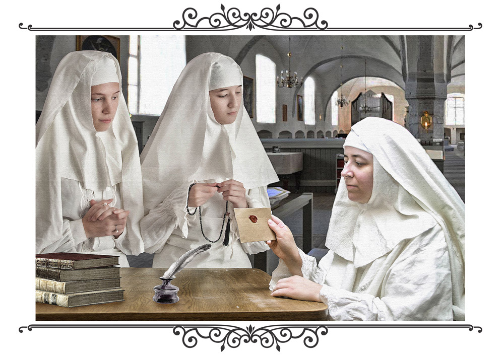 Оказавшись в келье аббатисы, Маркиза приветствовала её поклоном и поцеловала руку настоятельницы со словами:
