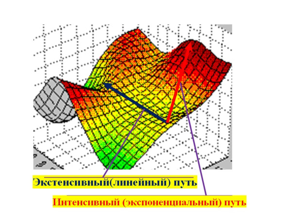 Т.е. для перевода экономики на инновационные рельсы нужен рост инновационного комплекса РФ по экспоненциальной зависимости (геометрической прогрессии) и концентрация ресурсов на главном направлении.