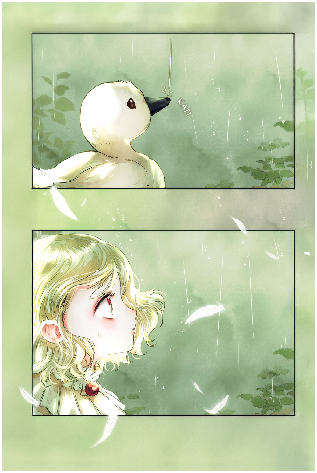 Словно пытаясь таким образом вернуть себе самообладание, она прикоснулась к голове лебеденка, лежащего у нее на коленях. Каким же невинным и милым был вид этой малышки-лебедя, которая, расправив крылья, подставляла свою головку под ее ладонь.