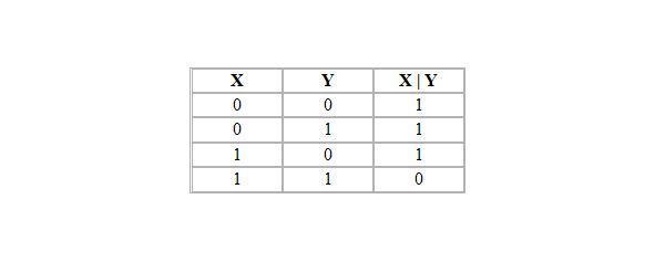 Штрих Шеффера, обычно обозначаемый | (вертикальной чертой), эквивалентен операции И-НЕ и задаётся следующей таблицей истинности: