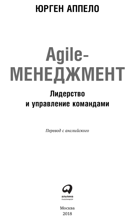 Agile-менеджмент: Лидерство и управление командами / Юрген Аппело; Пер. с англ. – М.: Альпина Паблишер, 2018.