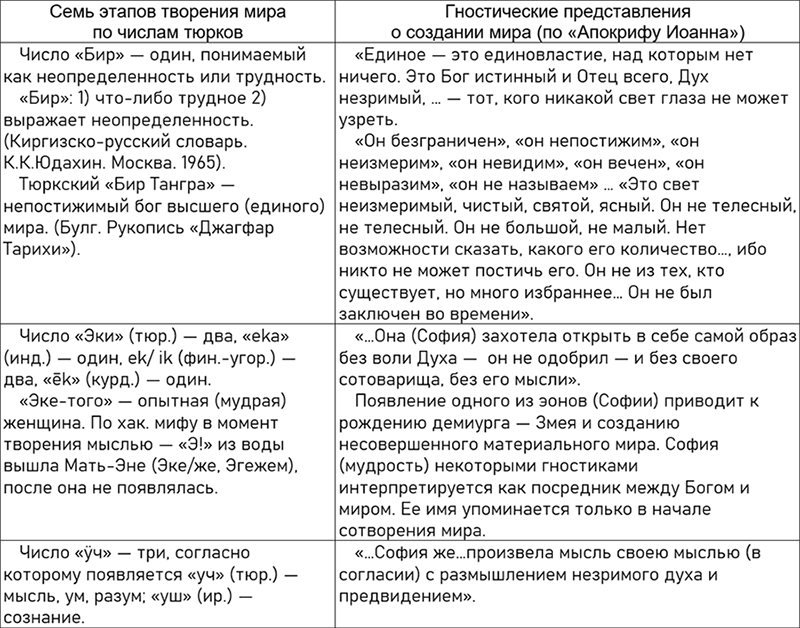 «Апокриф Иоанна» (или «Тайная книга Иоанна») – это гностическая рукопись IV–V вв. н. э. В этом труде излагаются основы космологического учения секты гностиков, во многом схожие с древнетюркской структурой мира по семи сферам или областям. О происхождении древнейших чисел как логического инструмента в познании мира, как показателей порядкового номера этапа создания Вселенной мы поведем речь в последующих главах.