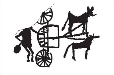 Но древнейшие рисунки повозок, предшественниц колесниц, у афанасьевских племен (еще до распада праиндоевропейско-туранской культурной общности) говорят об обратном, о западном направлении.