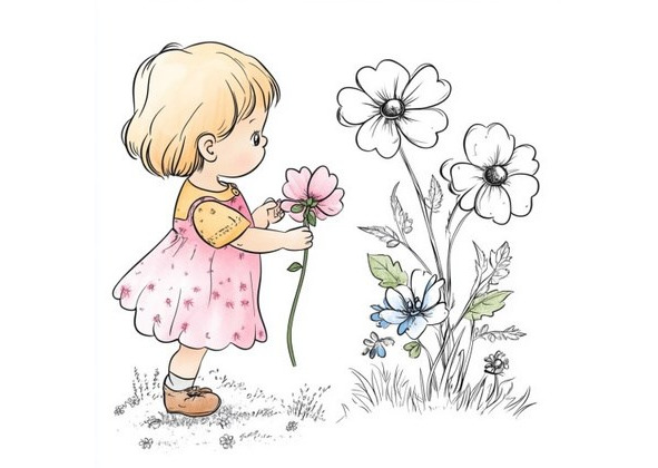 Little girl Lily is picking flowers in her garden. Help her pick the most beautiful and colorful flowers. This section of coloring pages for kids offers beautiful illustrations of decorative garden flowers.