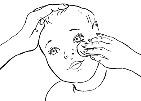 Протирайте лицо ребенка влажным спонжиком.