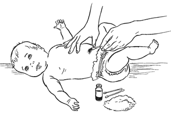 Все, что нужно делать маме, это всего лишь соблюдать ежедневный обычный гигиенический уход и обязательно очень тщательно подмывать ребенка после очередной смены подгузника под проточной водой. Девочек нужно всегда подмывать или обтирать по направлению спереди назад, то есть от лобка к ягодицам, чтобы случайно не занести инфекцию в половые органы, а мальчикам обязательно промывать складку под мошонкой. После подмывания область половых органов следует промокнуть сухим полотенцем.