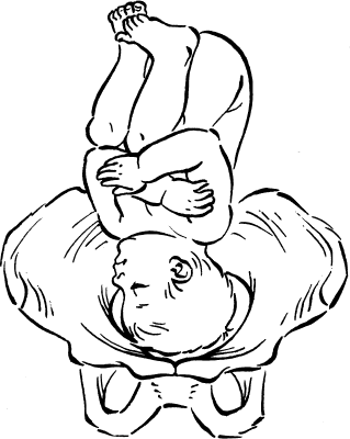 Самое оптимальное положение – это головное предлежание, т. е. когда ребенок находится в вертикальном положении – голова направлена вниз и обращена ко входу в таз, а ягодицы находятся наверху, и все тело расположено продольно вдоль матки. Голова при этом входит в область таза несколько пригнутой, подбородок прижат к груди, затылок повернут вперед. Именно при таком положении голова занимает наименьший диаметр, а значит, легче всего будет продвигаться наружу. Таким образом устраивается большинство будущей малышей.
