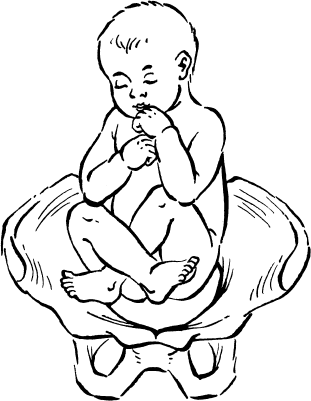 Ягодичное (тазовое) предлежание. Ребенок располагается ягодицами вниз, а голова находится в глубине матки.