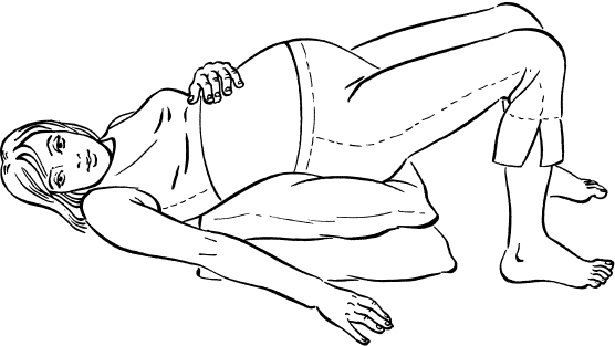 Упражнение 1«На боку». Лягте на ровную поверхность и лежите на том боку, куда смещена головка ребенка (обычно смещена в правое или левое подреберье). Это упражнение выполняют 3–10 минут 2–3 раза в день.
