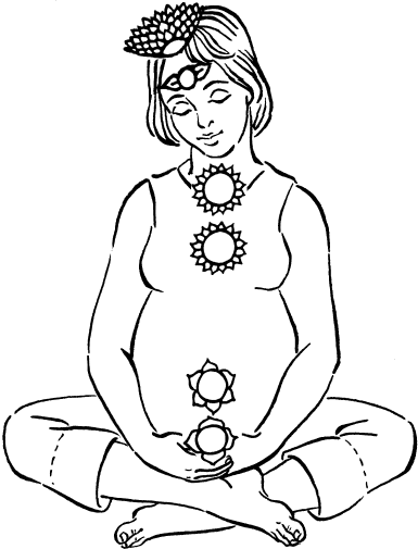 Согласно постулатам системы йоги, в нашем теле присутствует семь энергетических центров, или чакр, каждая из которых ассоциируется со звуком и цветом. Медитация высвобождает энергию, очищая таким образом закрытые энергетические центры. Эта процедура расслабляет и в то же время наполняет тело энергией, является мощным и вполне безопасным инструментом снятия напряжения во время беременности. С ее помощью можно подготовиться к естественному, безо всякого стеснения крику во время родов.