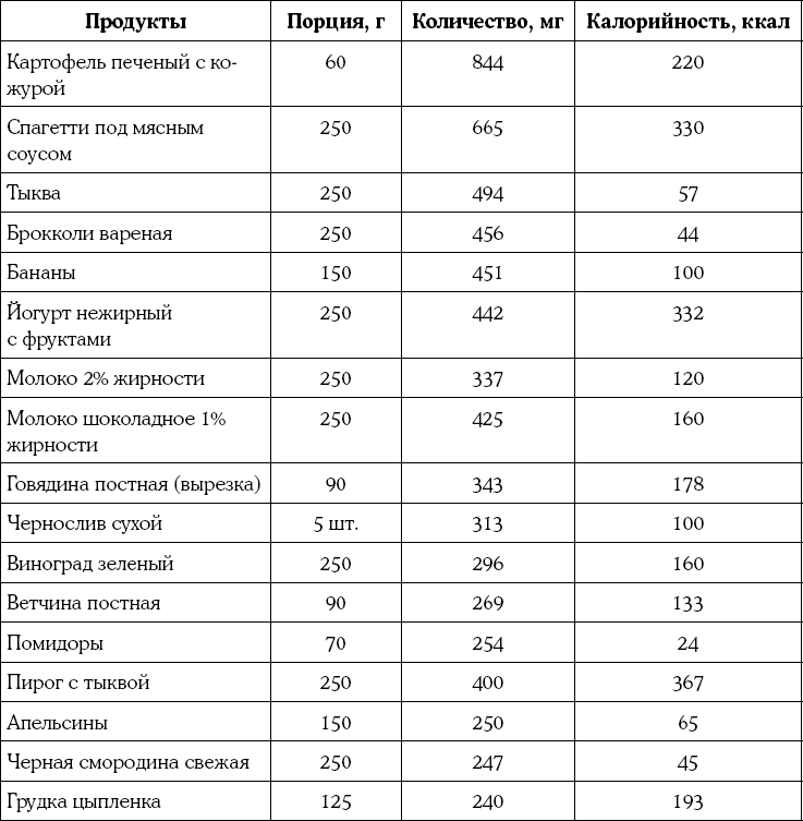 Калий. Как и предыдущие микроэлементы, калий помогает регулировать баланс жидкости в организме. Он необходим для сердечной деятельности, при передаче нервных импульсов и для сохранения нормального кровяного давления.