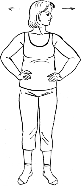 Исходное положение: стоя, ноги на ширине плеч, руки на талии.