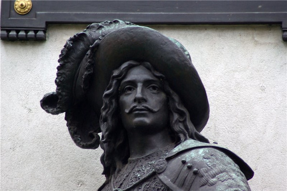 – Вот он, Шарль де Батц Кастельморо Д'Артаньян, что приехал в Париж на старой кляче из гасконской деревушки Люпиак и стал вскоре главным головорезом Де Тревиля. Он был нагл до умопомрачения! Я бы не сказала, что очень красив, здесь скульптор идеализировал этот персонаж. У него были очень длинные руки, непропорционально длинные, и за счет этого гасконец одержал немало побед в схватках на шпагах. Он превратился по сути в наемного убийцу, пешку в руках сильных мира сего. Отвязанный малый, любитель выпить и поволочиться за женщинами (в основном – замужними!), чрезвычайно самолюбивый, тщеславный, испытывающий большую тягу к воинским наградам и почестям…