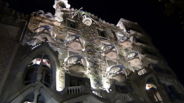 От Саграды мы пошли пешком через вечернюю Барселону. И добрались до дома Бальо, который, как известно, красив именно в темное время суток.