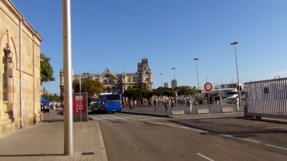 В Барселоне в круизы отправляются обычно на автобусах синего цвета, курсирующих между площадью Колумба и терминалами порта. Для тех, кто еще не знает, куда идти с чемоданами, ставлю пару фото. Вот там, где автобус – высадка пассажиров с кораблей. Слева от здания – памятник Колумбу.