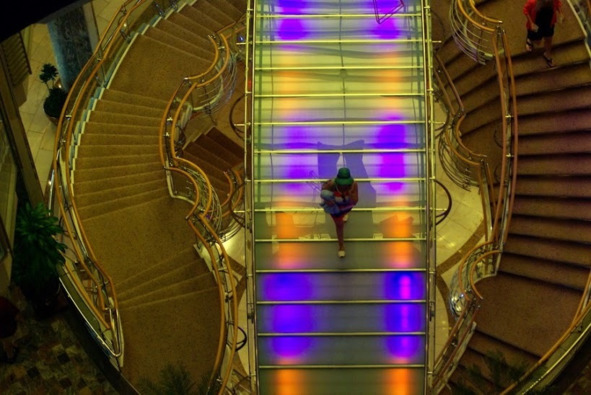 Спускаемся на 5-й этаж. Вечерний Променад уже засверкал своими огнями.