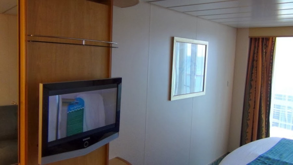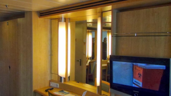 В каюте холодильник, сейф, фен, много места для одежды и обуви в шкафу.