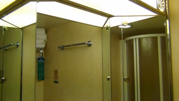 Вот тут важный стратегический момент. Кто не в курсе – почему мы, как и большинство российских туристов, переливали «лекарство» в емкость из-под «Кока Колы» и грузили ее в чемодан? Потому что, если понесешь в бутылках, то на просмотре их обязательно отберут и вручат вам в последний день круиза. А крепкий алкоголь на борту стоит ох как недешево. Но в порту Барселоны, оказывается, можно было этого не делать. В Duty Free по демократичным ценам можно было прикупить что угодно и пронести в свою каюту – вещи вообще не проверяли! Мы и прикупили еще две небольшие бутылочки текилы. Вот только одно огорчение постигло нас на входе – никто не знал, где и у кого поставить печать на документах для возвращения Tax free, от покупок, что мы сделали в торговом центре. А, ладно – махнули рукой, уж больно сильно хотелось в свою каюту, опять же не выспались ночью, там лечь, подремать, благо до отплытия оставалось часов 6 еще. Прошли на корабль, поднялись на лифте к 8 этажу. Увы, тут нас поджидала маленькая неприятность – каюты еще не были готовы, и куковать без душа и мягкой постели надо было еще два часа – до 13—00. Ну ладно, ждать так ждать. Мы спустились на 5-й этаж к Променаду, зашли в кафе, взяли там по пицце и отметили первый час пребывания на этом замечательном лайнере. Потом пошли знакомиться с ним, зная, что в первый день заглянуть во все уголки судна вряд ли удастся.