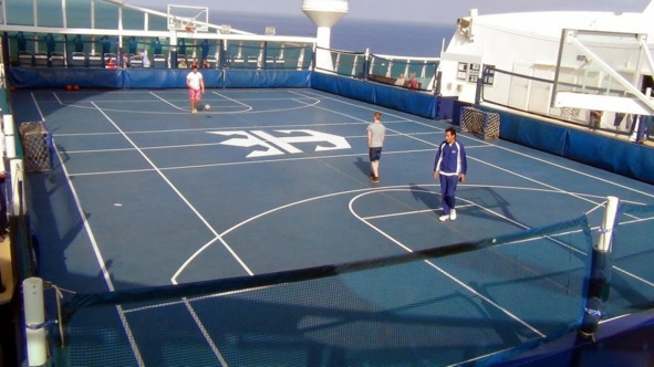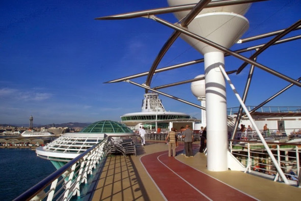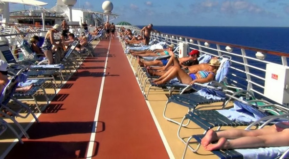 Беговая дорожка на 12-й палубе вдоль борта. Утром здесь – стаи бегунов, днем – загорающих.