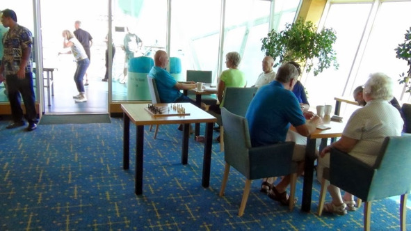 Вы видели перед этим шахматный столик. Но я ни разу не сел за него. Не то, что бы не было партнеров, но как-то не до шахмат стало в этом головокружительном корабельном ритме открытий, развлечений, солнечных ванн и прочего приятного времяпровождения. К своему стыду я начисто забыл, что в начале ноября в Индии начался матч на первенство мира по шахматам между Анандом и Карлсеном. Вот что такое – прекрасный отдых, замечательный круиз!