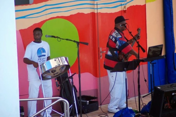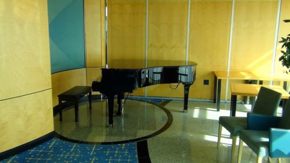 По вечерам здесь играют два афроамериканца, ритмично и ненавязчиво, часто – произведения Карлоса Сантаны. Днем их можно было увидеть под огромным экраном у двух бассейнов.