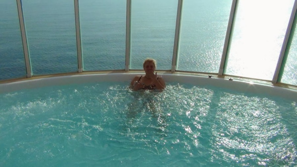 Это – фишка Liberty of the Seas, джакузи над водой. Жаль, что пол там не из стекла, чтобы были видны океанские волны, проносящиеся под тобой, снизу. Еще дома, рассматривая это оригинальное сооружение, жена заявила: – Я там купаться не стану! Вдруг всё оторвется и мы упадем в воду!