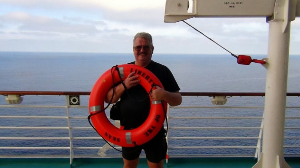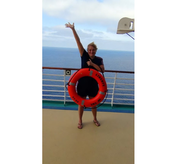И мы потопали в каюту. По пути выполнили давнюю традицию круизеров с форума Винского – сфотографировались со спасательным кругом. А что – в тему SOS, как говорится.
