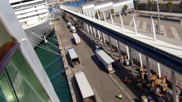 А нам кажется, что Барселона замерла в ожидании… Судно компании MSC – Orchestra готово выйти за нами.